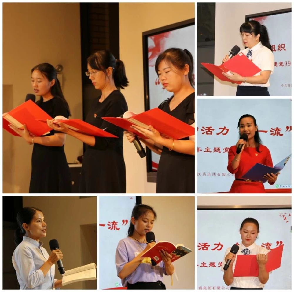 朗誦內容豐富多彩:表達堅守初心的《擁抱:咫尺之遠的初心到達》;表達對黨和祖國的熱愛的《祖國明月心》,體現艱苦奮斗延安革命精神的《梁家河》故事節選《他干活從不撒奸兒》;歌頌黨偉大誕生的《紅船,從南湖起航》;頌揚黨正風反腐的堅定立場的《習近平講故事》之《反腐沒有“紙牌屋”》;涓涓綿長的愛國之歌《有一首歌》;表達對中醫藥事業傳承的堅定決心的《致敬中藥人》以及振奮人心充滿力量的《黨旗頌》。展示了各位黨員同志勇于創新,知難而進、艱苦奮斗、務求實效、一往無前的愛黨愛國精神。